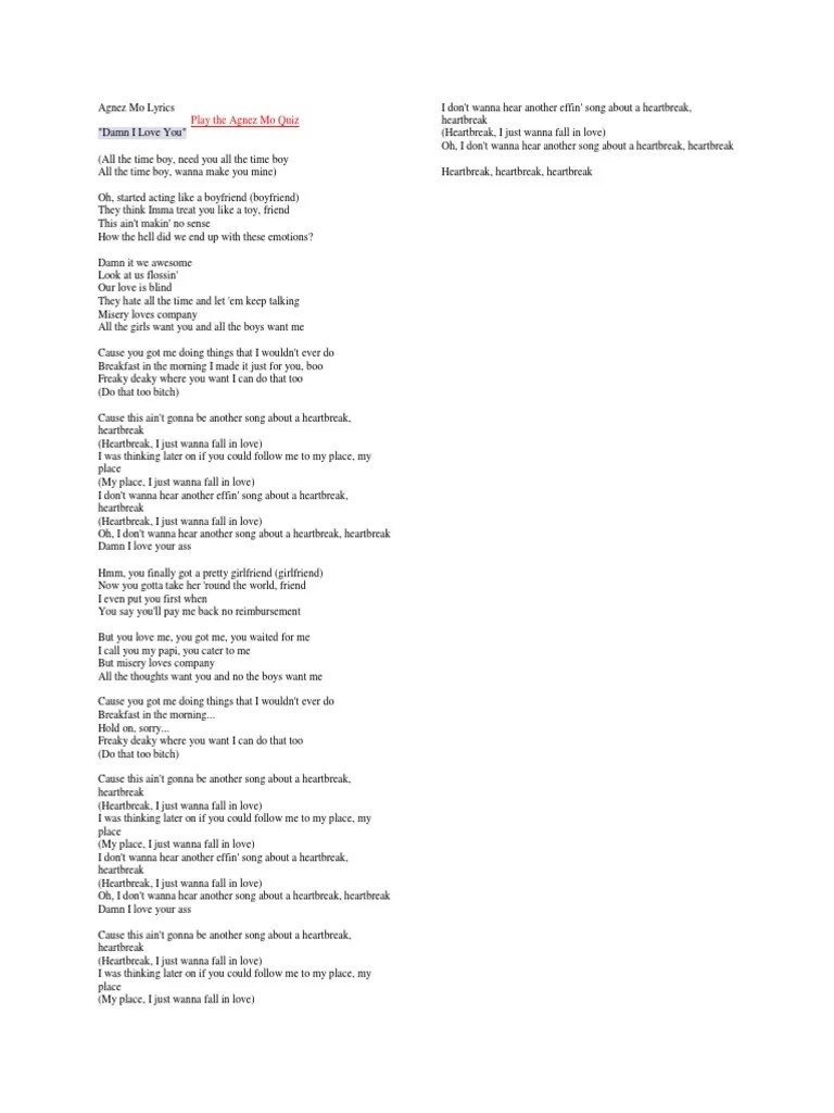 Lagu tersebut berjudul damn i love you yang diambil dari album internasionalnya, x. Explain your version of song meaning, find more of agnez mo lyrics. Damn i love you lyrics. intro / ooh, ooh / all the time boy, need you all the time boy / ooh . Behind the boards apple music playlist.